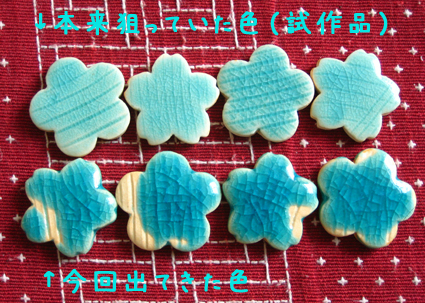 一回目の焼成ではうまく焼けたのですが、「ちょっと薄かったかな?」と思って本番で釉薬を厚めにかけたら今度は厚くしすぎてちゅっ!ってなった、という状態です。