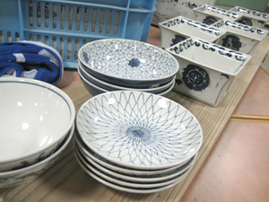 ちなみに絵付け時の写真は写真右の浅鉢です。左の浅鉢はそのあと「さっきのは小さすぎた…」と反省して描いたもの。