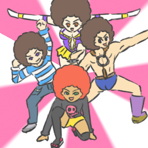 Wi-Fiショッピングで地道に買い集めたアフロがついにパーティ全員分揃ったのが嬉しくて。