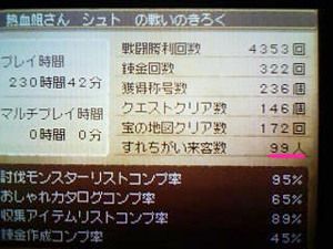 先週末久々に街へ繰り出してみたところ、思った以上にいいペース…もしかしたら! と思いましたが99人で打ち止めでした。なんか悔しい。
