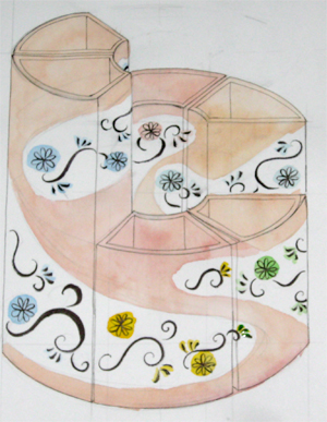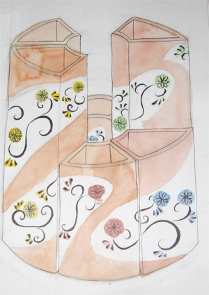 絵付けの柄は仮のものですが、大体こんな形状のものにしようかと企んでいまして。
