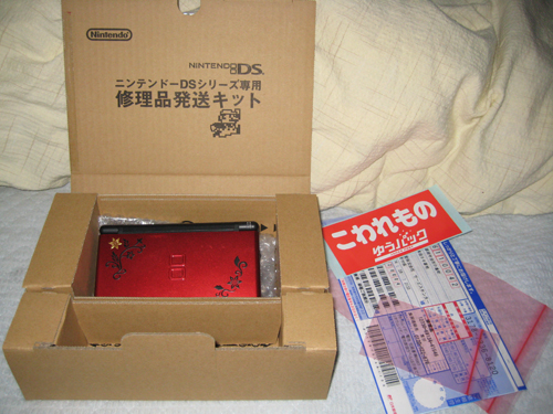 とりあえず修理に出します。親切対応と噂の任天堂さんにメールしました。何か数日中にDS入れて送る用の箱が向こうから送られてくるみたいです。ううっ