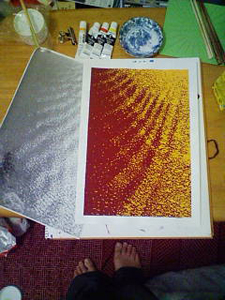 この手紙を書き終わったら、また水面のきらめきを表現する作業に戻ります。ここまで描いてから、課題は『水の形をデザインとして描く』だけど、コレって唯の『水面の絵』だよなー。風景だよなー。「これ、課題と違うし」とか言われて突き返されたらどうしようとか思うと心が折れそうですが、今更違うデザインで書き直す体力も精神力も、何より時間もありませんのでこのまま描き切ってしまうことにします。提出は明日の午前中です。