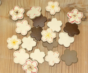とりあえず試作品20個で遊んでみたら「白が圧勝すると絵面的に寂しい」という結果が出たので、白半分ぐらいにアイシングっぽく絵をつけてみました。