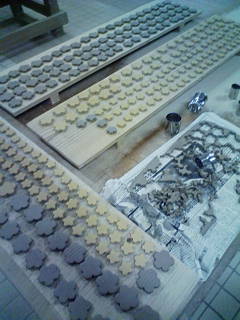 白土と赤土をクッキーの型で抜いてくっつけて焼く。